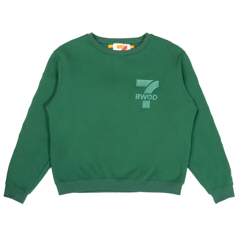 Pay homage to the origins of 7-Eleven with this heavyweight 12oz oversized crewneck, crafted in the brand’s signature green. Elevated with premium embroidery, the design nods to the first 7-Eleven location in Oak Cliff, Dallas, Texas, with coordinates along the sleeve and a vibrant retro Dallas skyline graphic on the back.