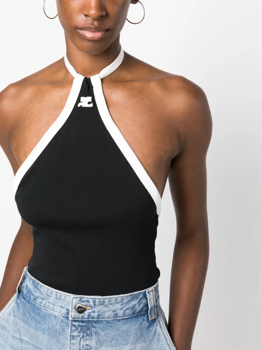 embroidered-logo halterneck top