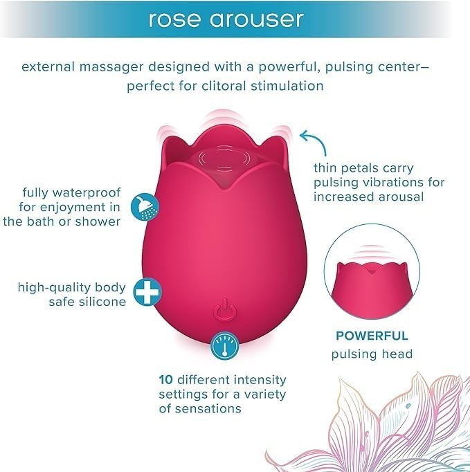 • 100% Waterproof - The Rose Arouser has an IPX-7 waterproof rating and can be submerged in water for 30 minutes making it easy to clean and perfect for use in the shower or bath. This clitoris vibrator is the perfect way to unwind and relax.