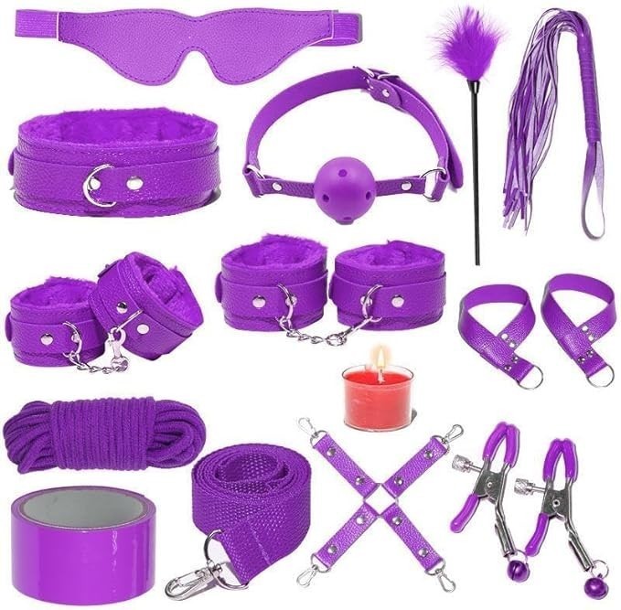 SM Plush Leather Multi-Piece Combination Set, Binding and Binding Props, Alternative Sex Toys, Adult Fun Products (13pcs Purple)